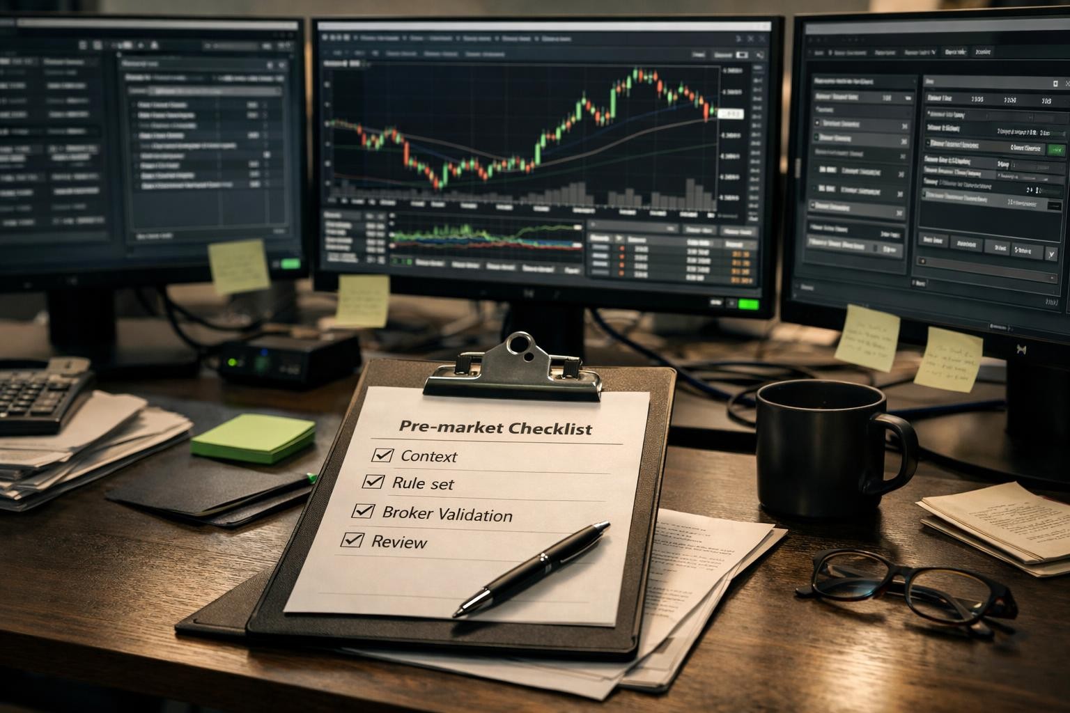 The better adjustment is writing down the exact response to each exception ahead of time, including whether the system should retry, pause, flatten, notify the operator, or wait for manual review before doing anything else. That change sounds simple, but it forces the exception-handling layer to become concrete. Instead of relying on memory, the trader ends the section with a opening range plan, explicit conditions tied to the live setup, and a cleaner line between “valid” and “not valid.”