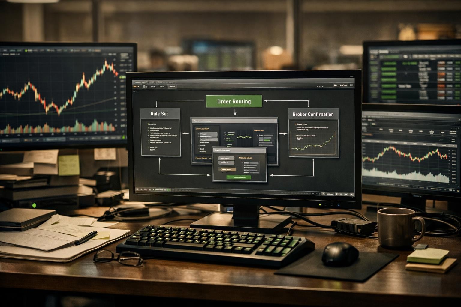 Once the environment is clear, the trader translates the setup into instructions the rest of the stack can understand. That includes the instrument, the direction, the size or risk rule, the session window, and the exact condition that should block the trade if reality no longer matches the plan.